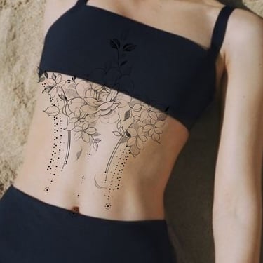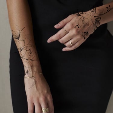 los detalles florales cobren vida en la piel de una manera sutil y elegante.