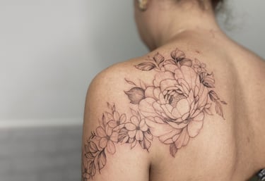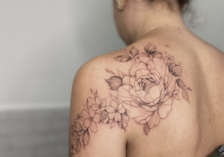los detalles florales cobren vida en la piel de una manera sutil y elegante.