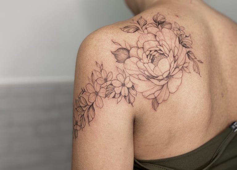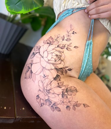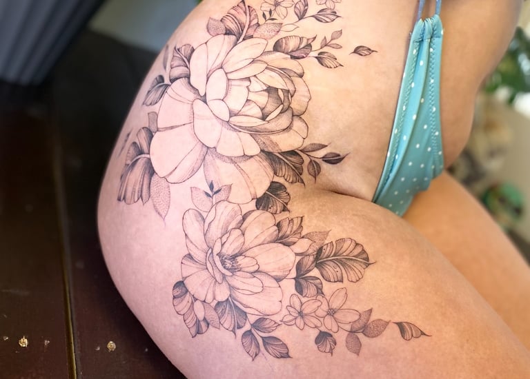diseños florales pintados directamente sobre la piel para seguir sus curvas