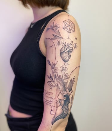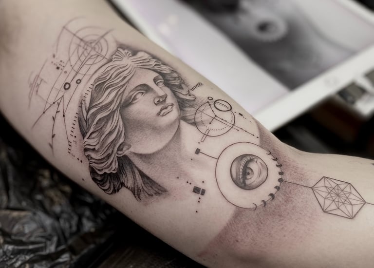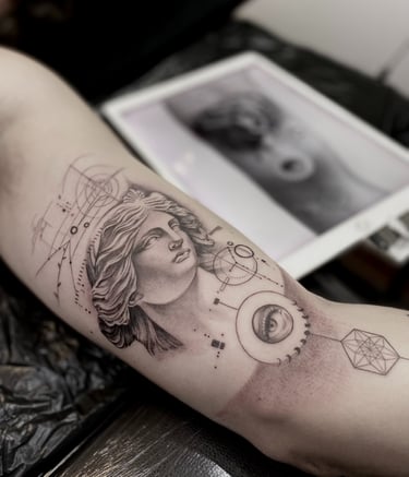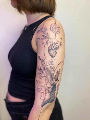 una estilo fresco que combina los elementos realistas con decoraciones o símbolos de línea fina